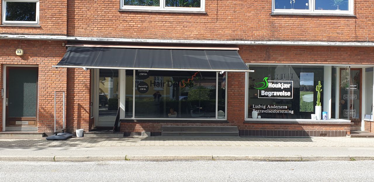 Nyindrettet forretningslejemål til frisørsalon på 48 m², baglokale på 32 m² samt toilet og baggang.