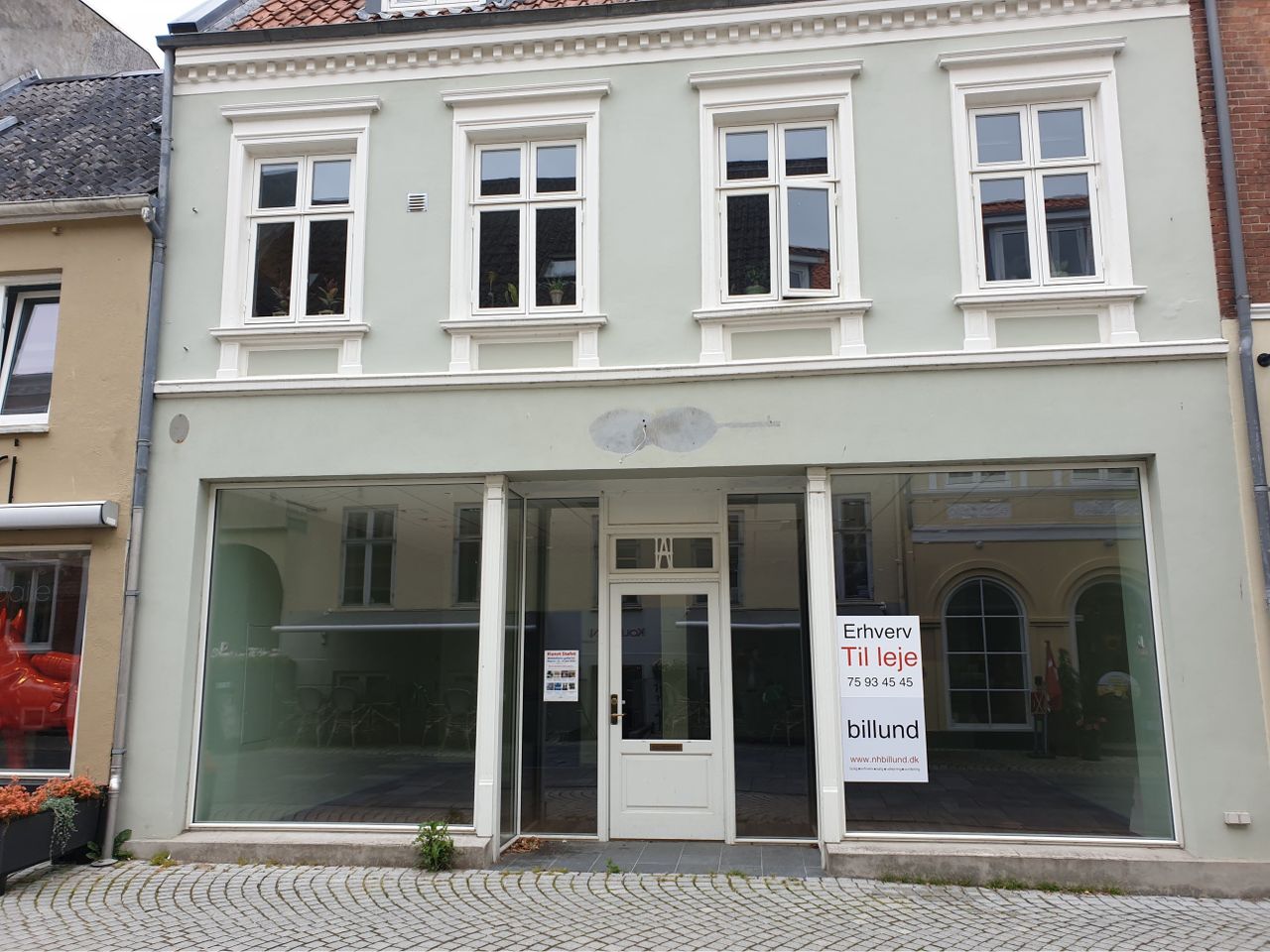 Lejemålet indeholder stort forretningslokale. Køkken med spiseplads. Toilet. Baggang til gård med