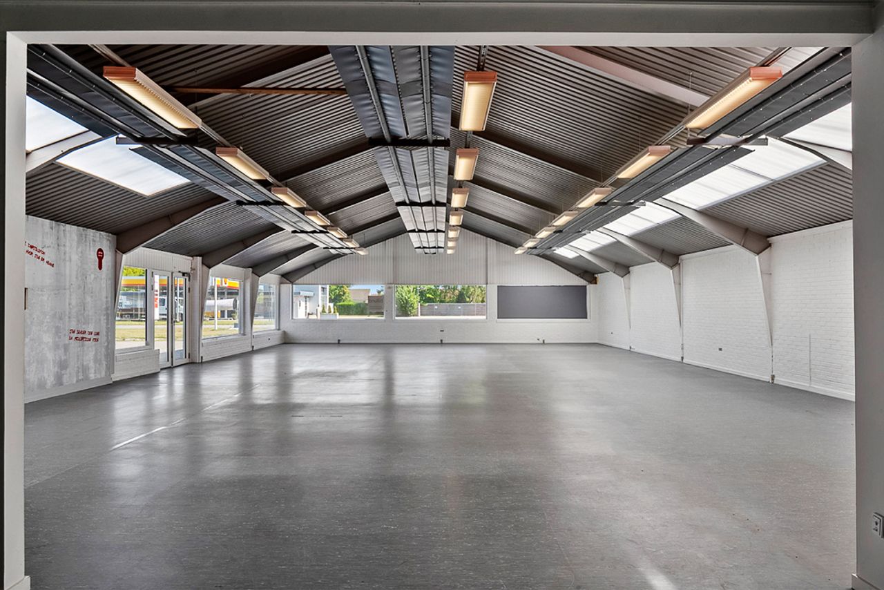 Stort vedbeliggende forretningslokale på 402 m² med store udstillingsvinduer og gode parkeringsforhold.
