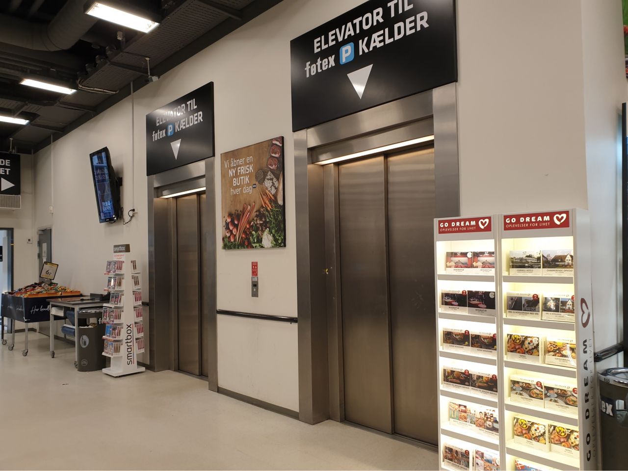 Der er fra parkeringskælderen direkte adgang med elevator til Føtex.