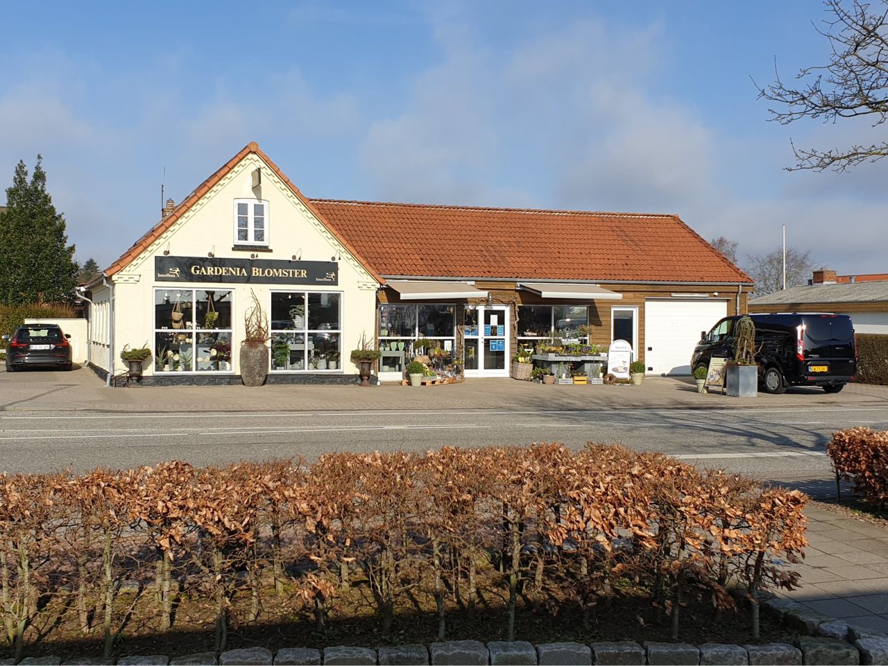 blomsterforretning, beliggende ved Erritsø butikstorv lige ved rundkørslen.
